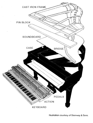 piano. More than 400 pounds of force bear down on the piano's soundboard